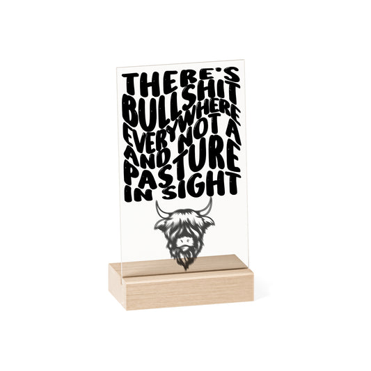 Bullsh*t No Pasture - Acrylic Sign with Wooden Stand