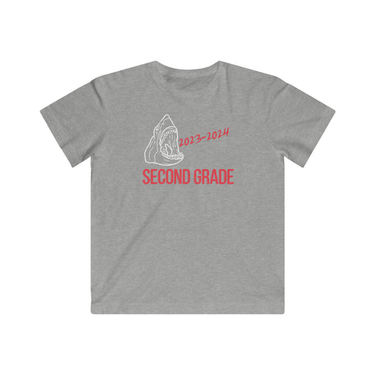 Shark, Second Grade First Day 23-24 T-Shirt White/Red Text