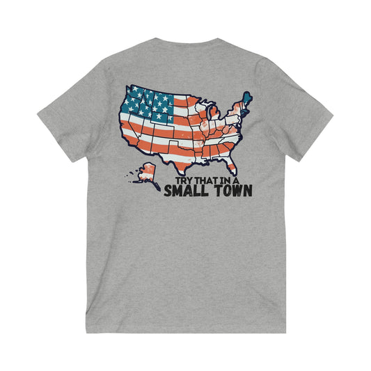 Try That in a Small Town - Aldean - Unisex Jersey Short Sleeve V-Neck Tee
