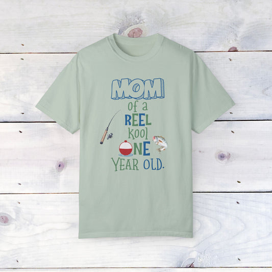 Mom of a Reel Kool One Year Old Unisex Comfort Colors Shirt