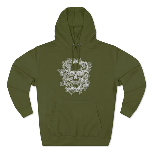 Skull with Rose Background - Unisex Premium Pullover Hoodie
