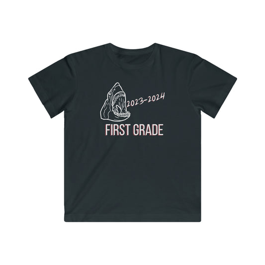Shark First Grade First Day of School '23-'24, White Text