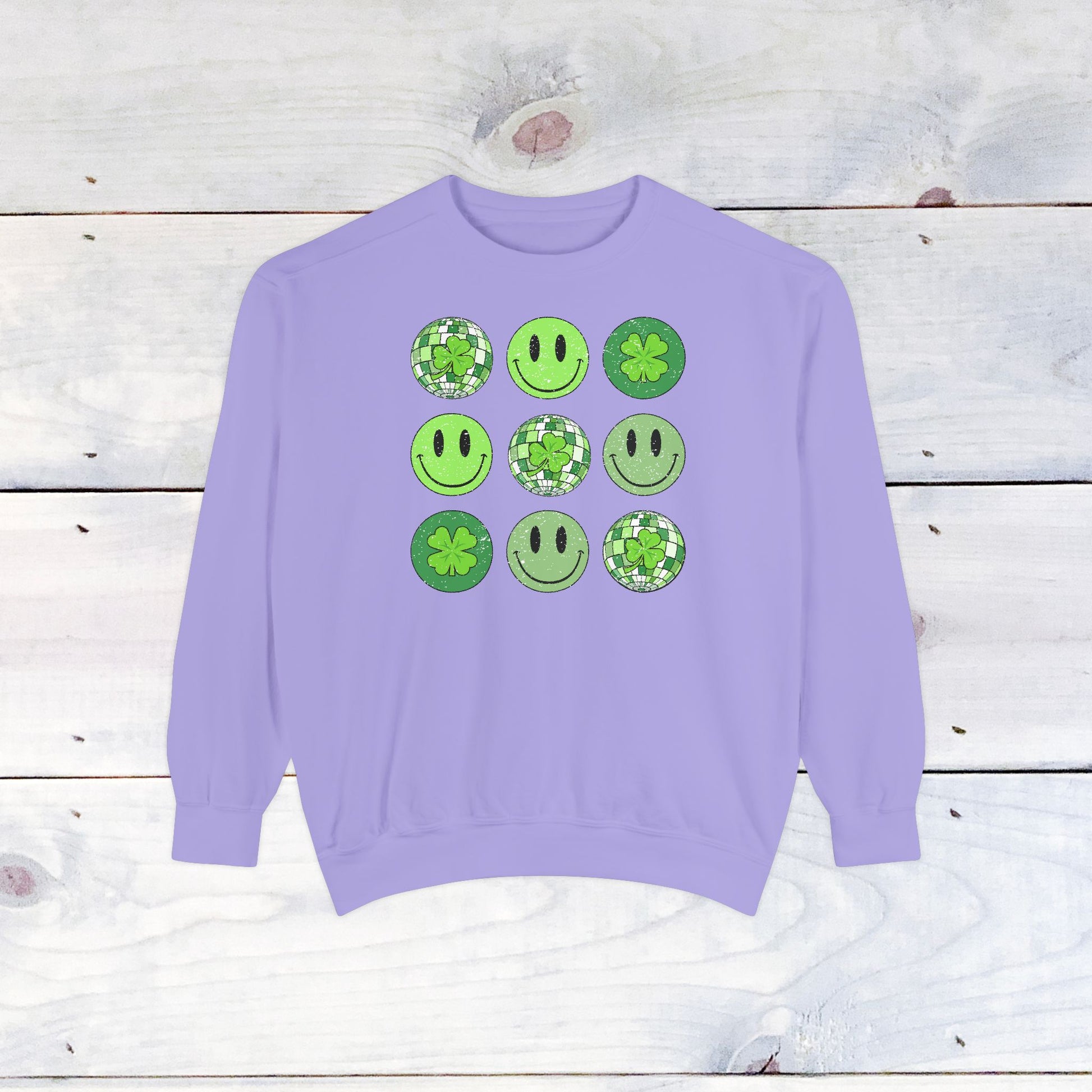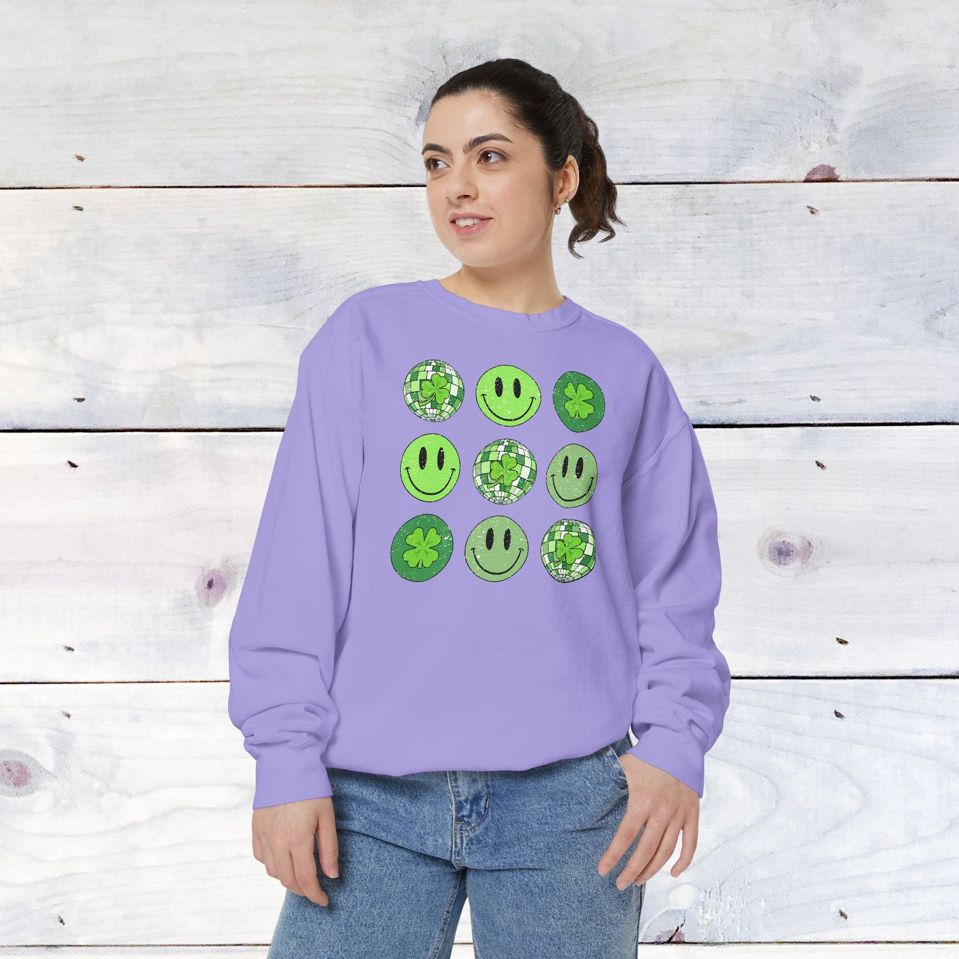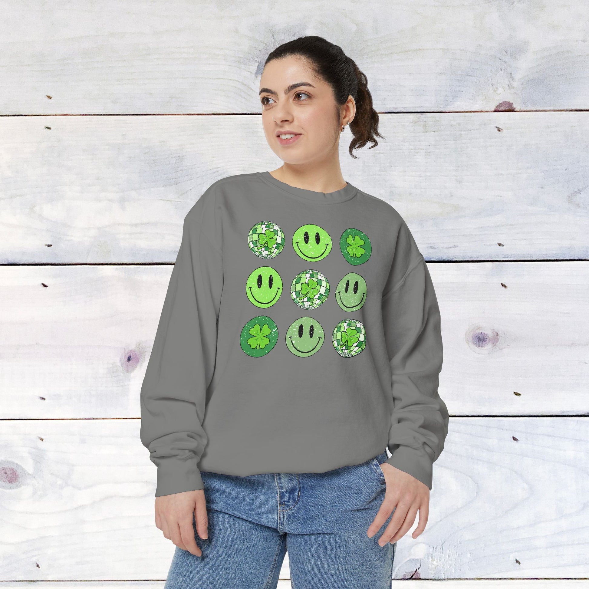 Smiley St Patty's Day Grid Comfort Colors Sweatshirt