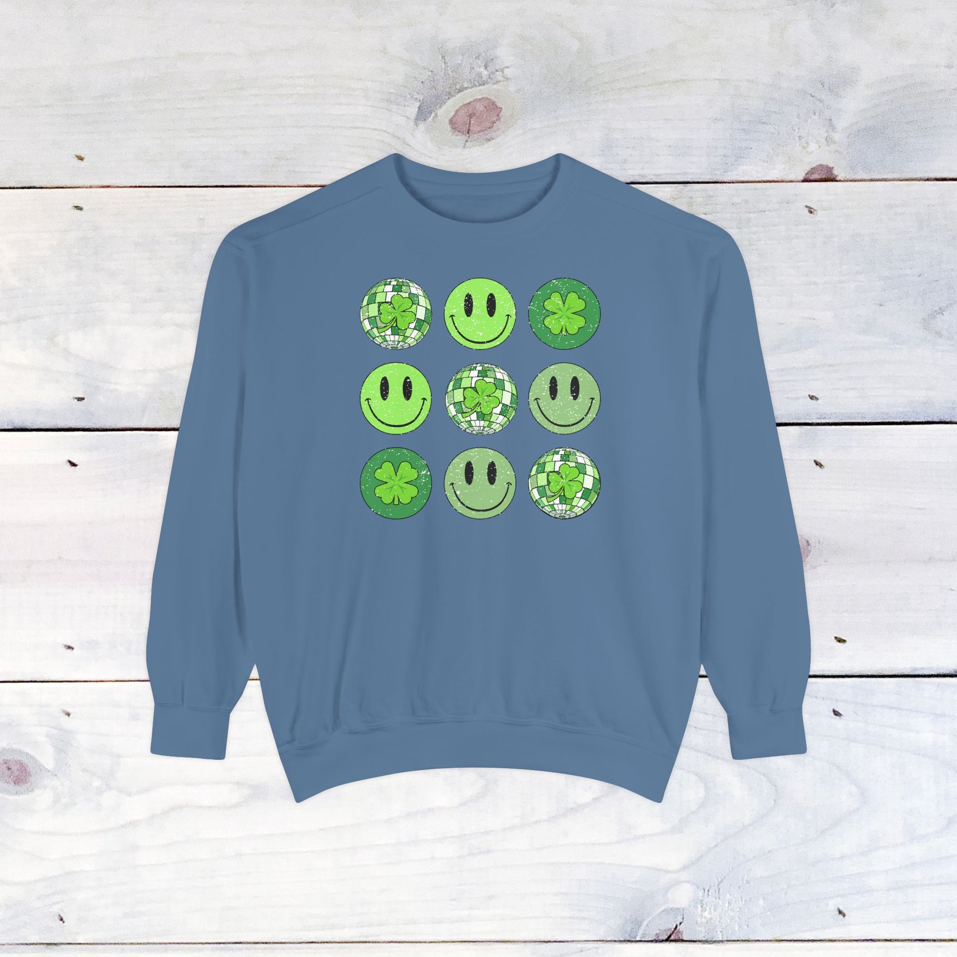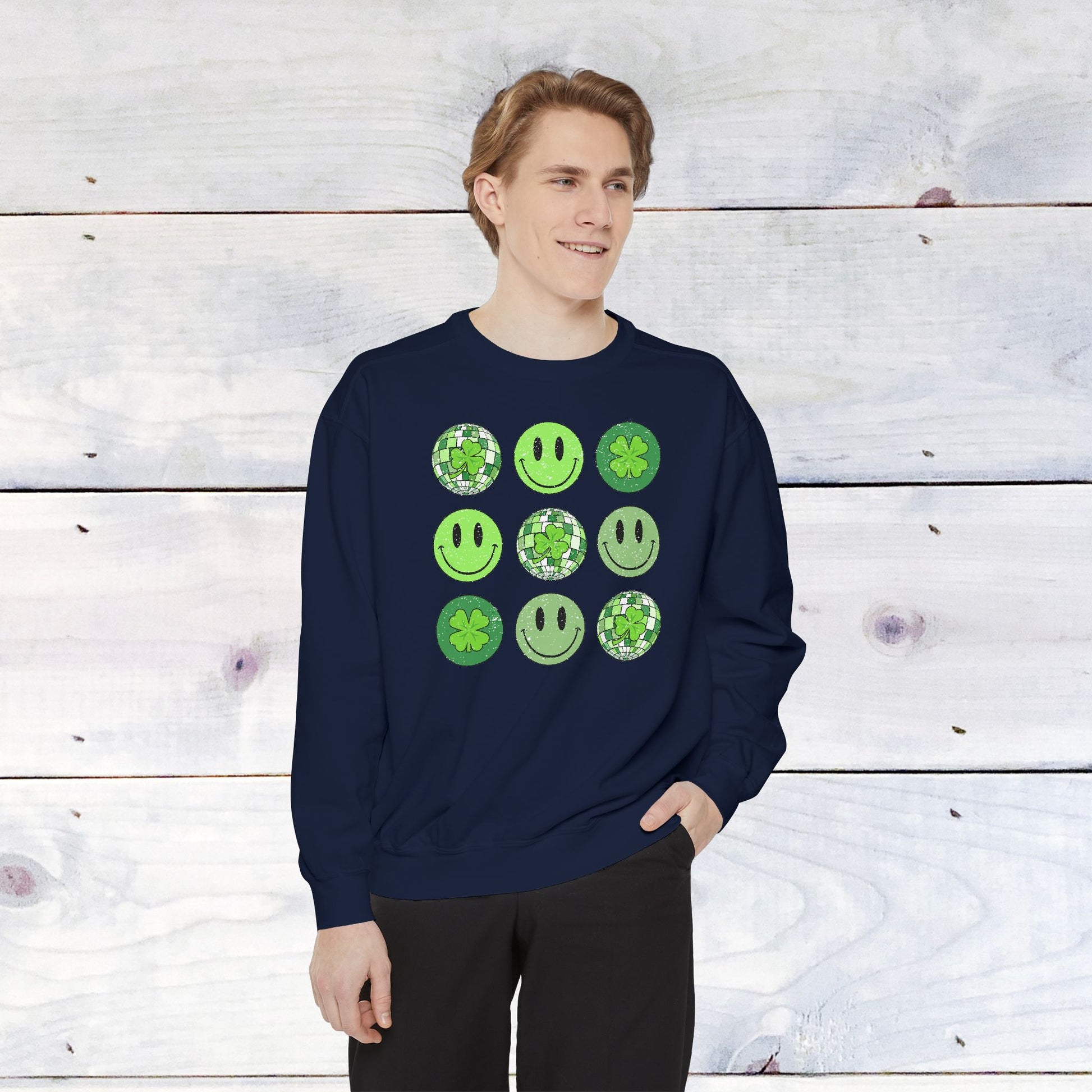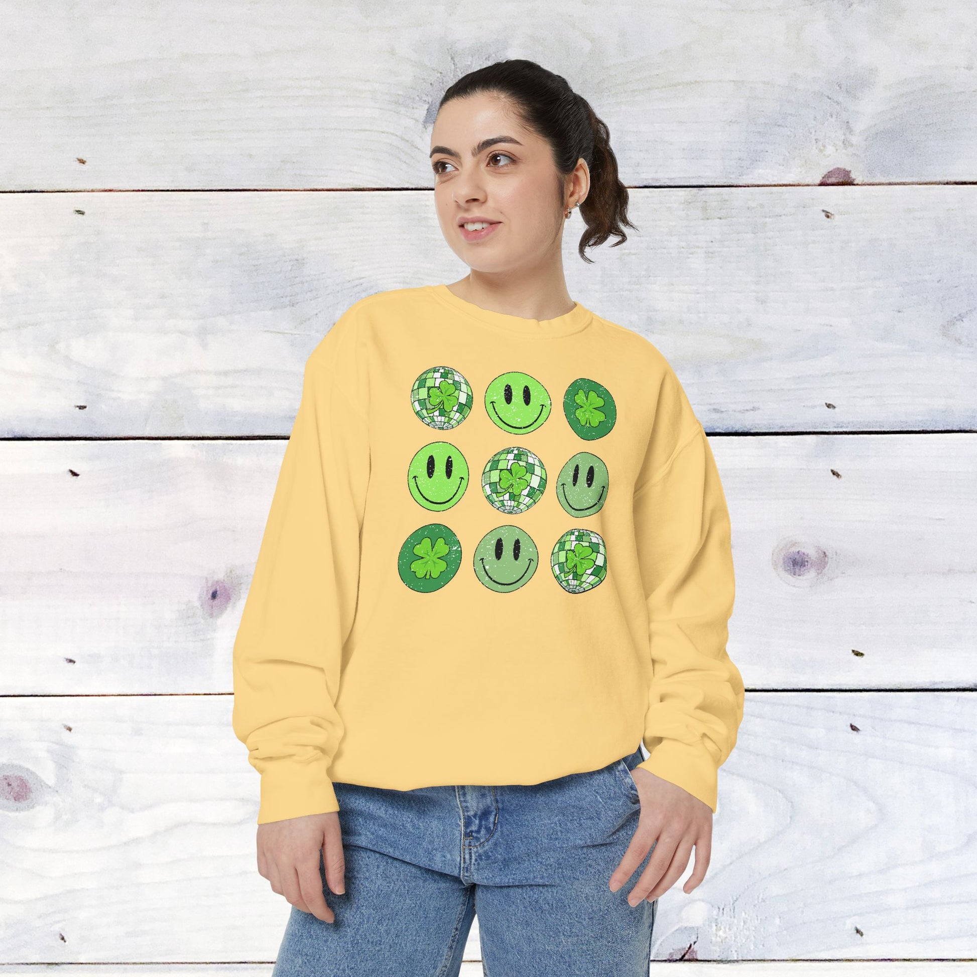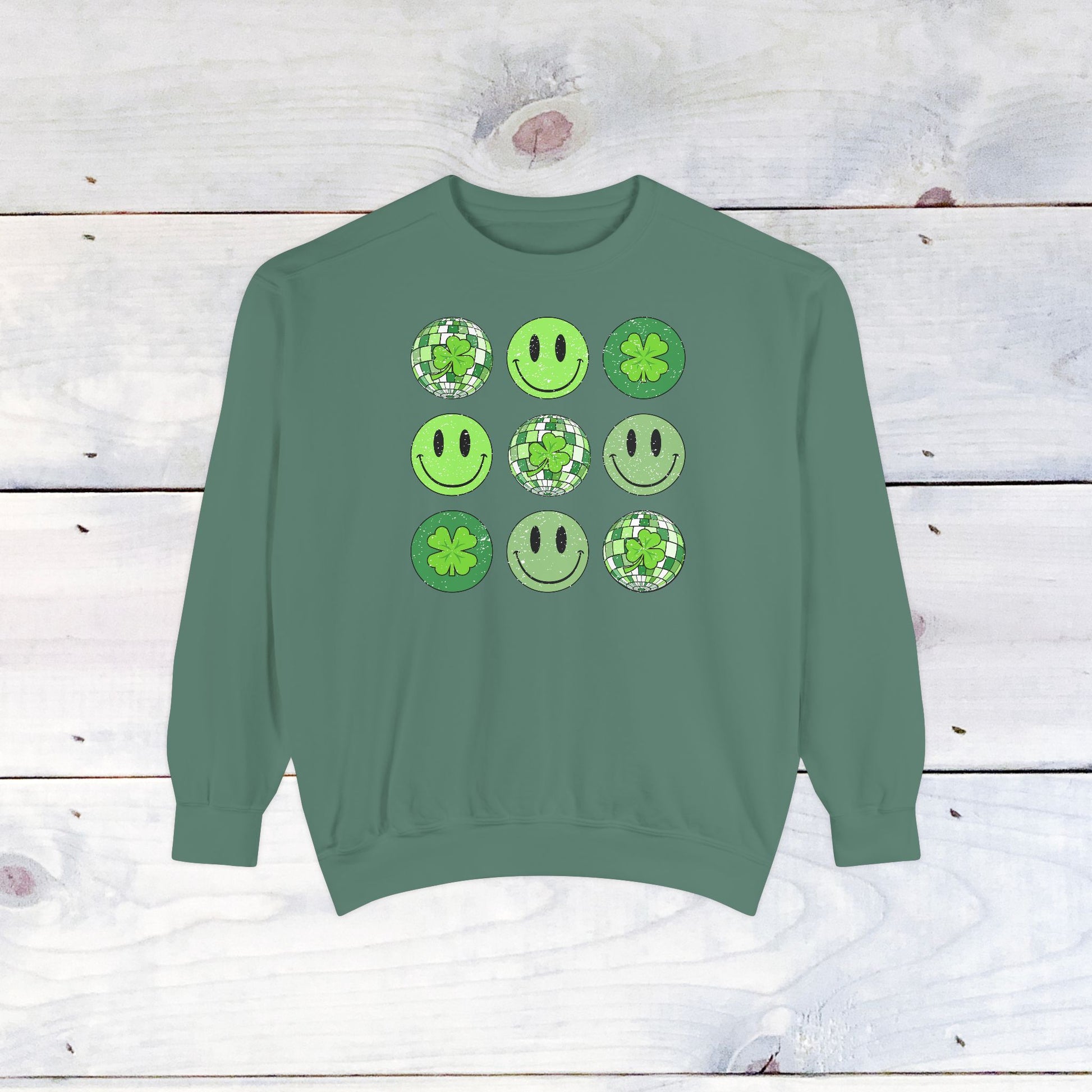 Smiley St Patty's Day Grid Comfort Colors Sweatshirt